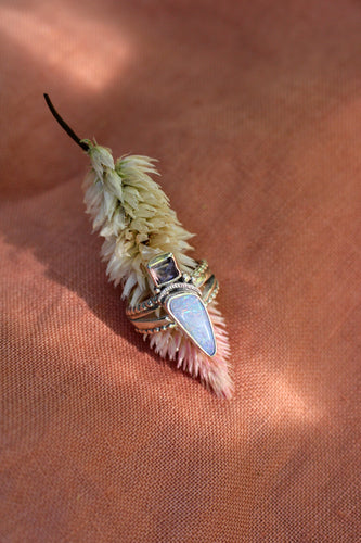 Purple Tourmaline + Australian Opal Ring - Size 6