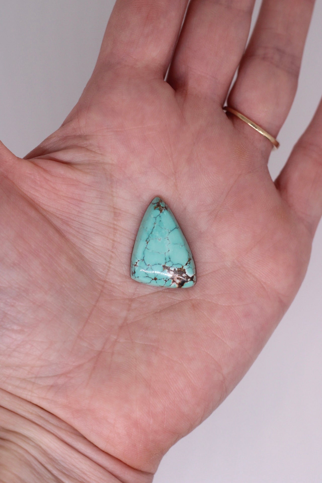 • Load image into Gallery viewer, Turquoise stone held in a hand against a neutral background