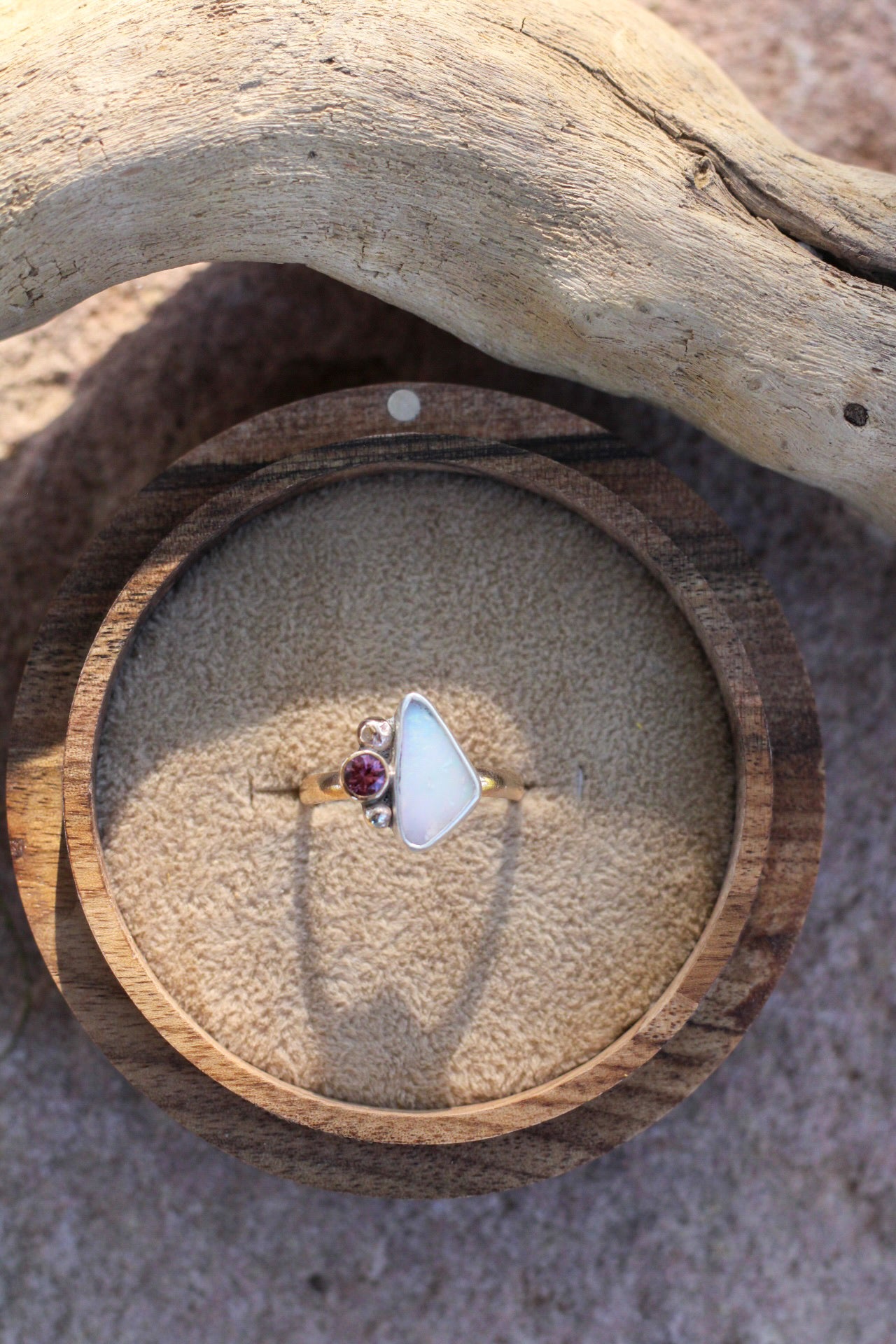 Australian Opal + Rose Zircon Ring - Size 7.75
