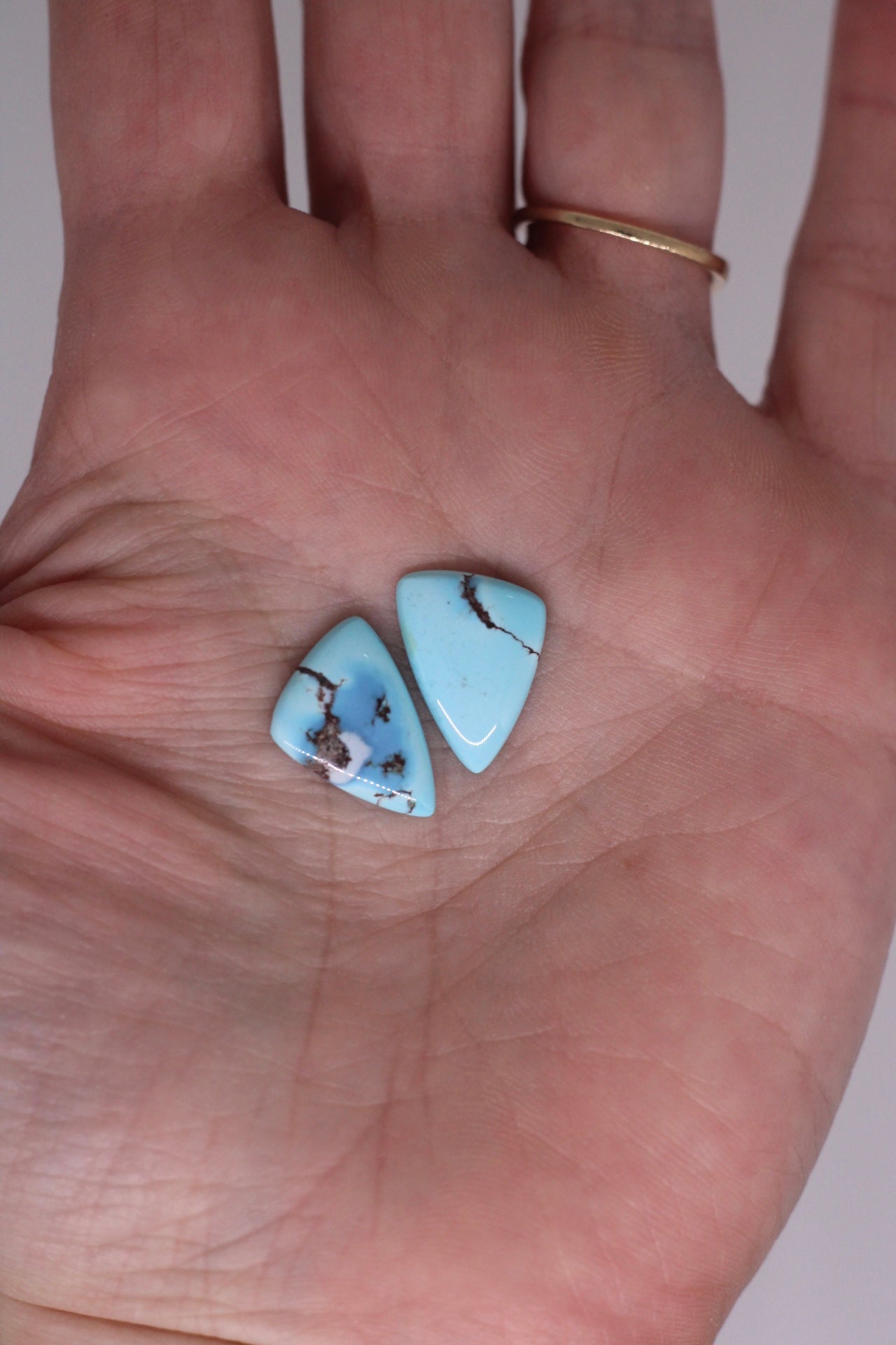 • Load image into Gallery viewer, Two turquoise stones held in a hand with a plain background