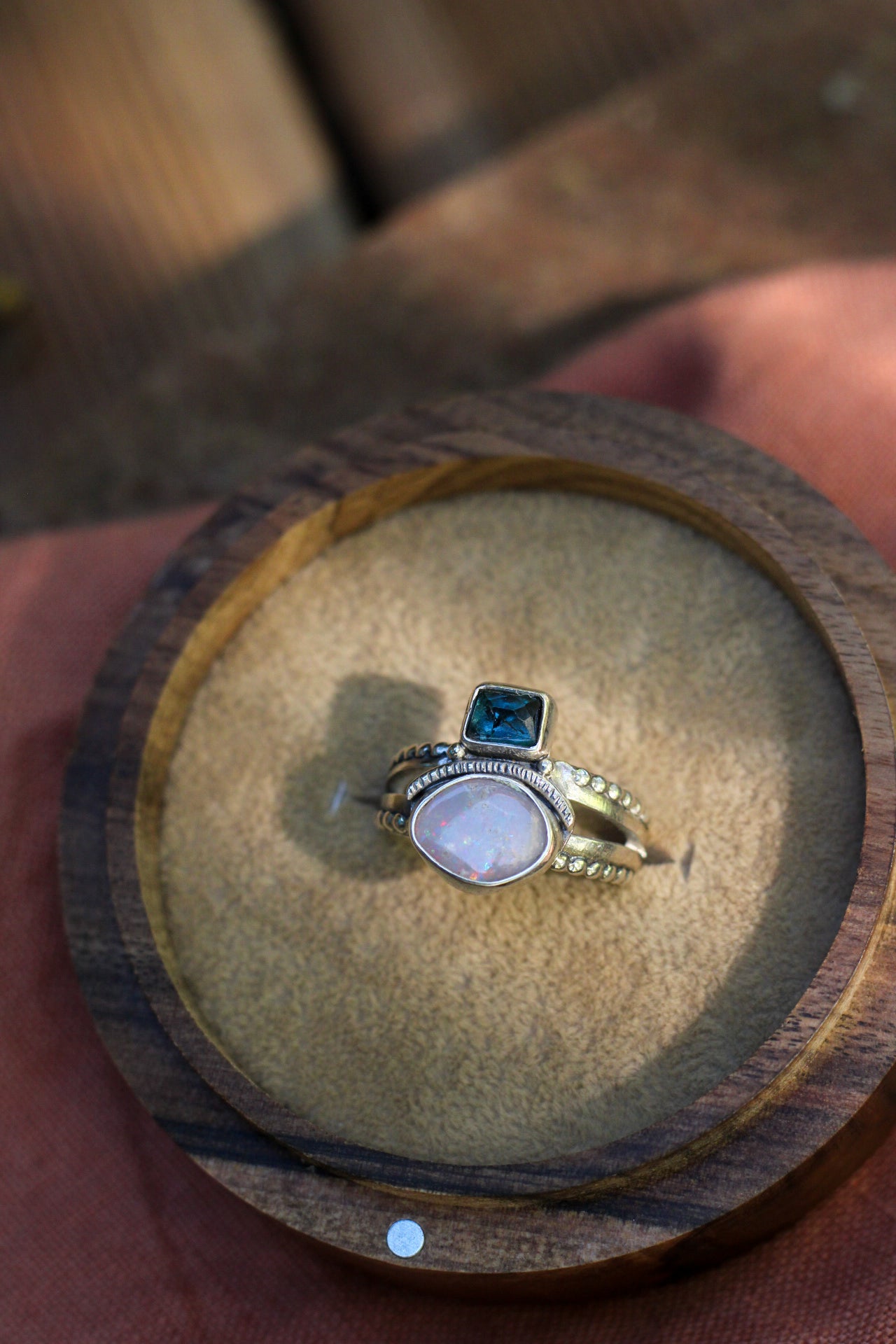 Blue Tourmaline + Australian Opal Ring - Size 8