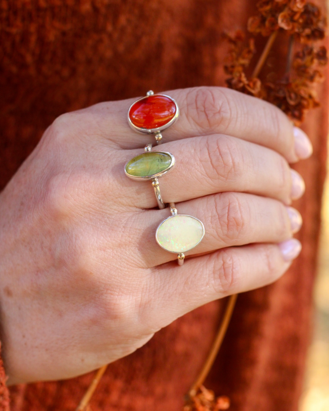 All of my jewelry is crafted with intention in my small studio located in Northern California. Due to my pieces being handmade, they are perfectly imperfect, all one of a kind, and unique just like you. All orders are packaged with care in eco-friendly packaging.