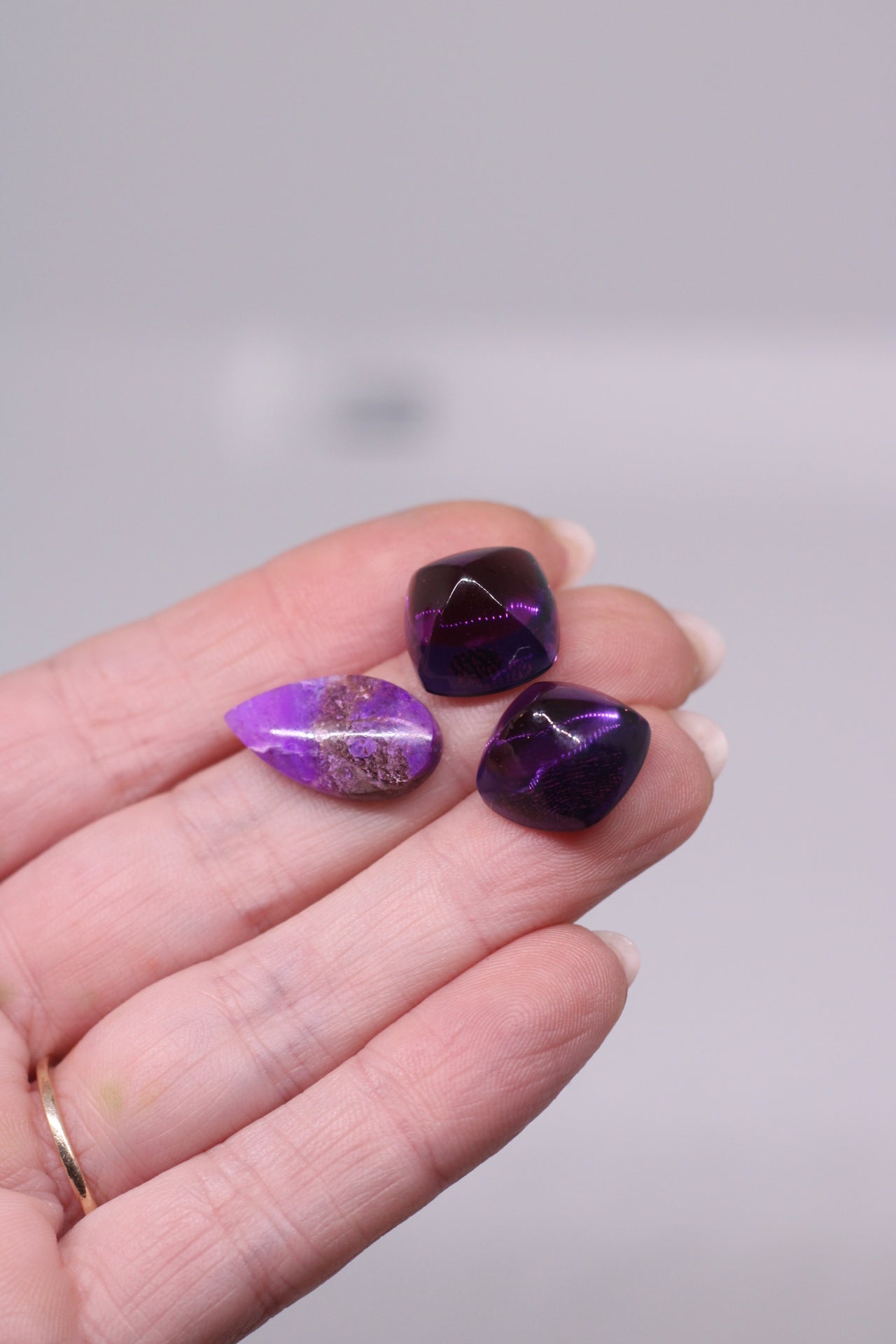 Amethyst with sugarloaf cut & Sugilite. Sugilite is very rare, this was originally $65.