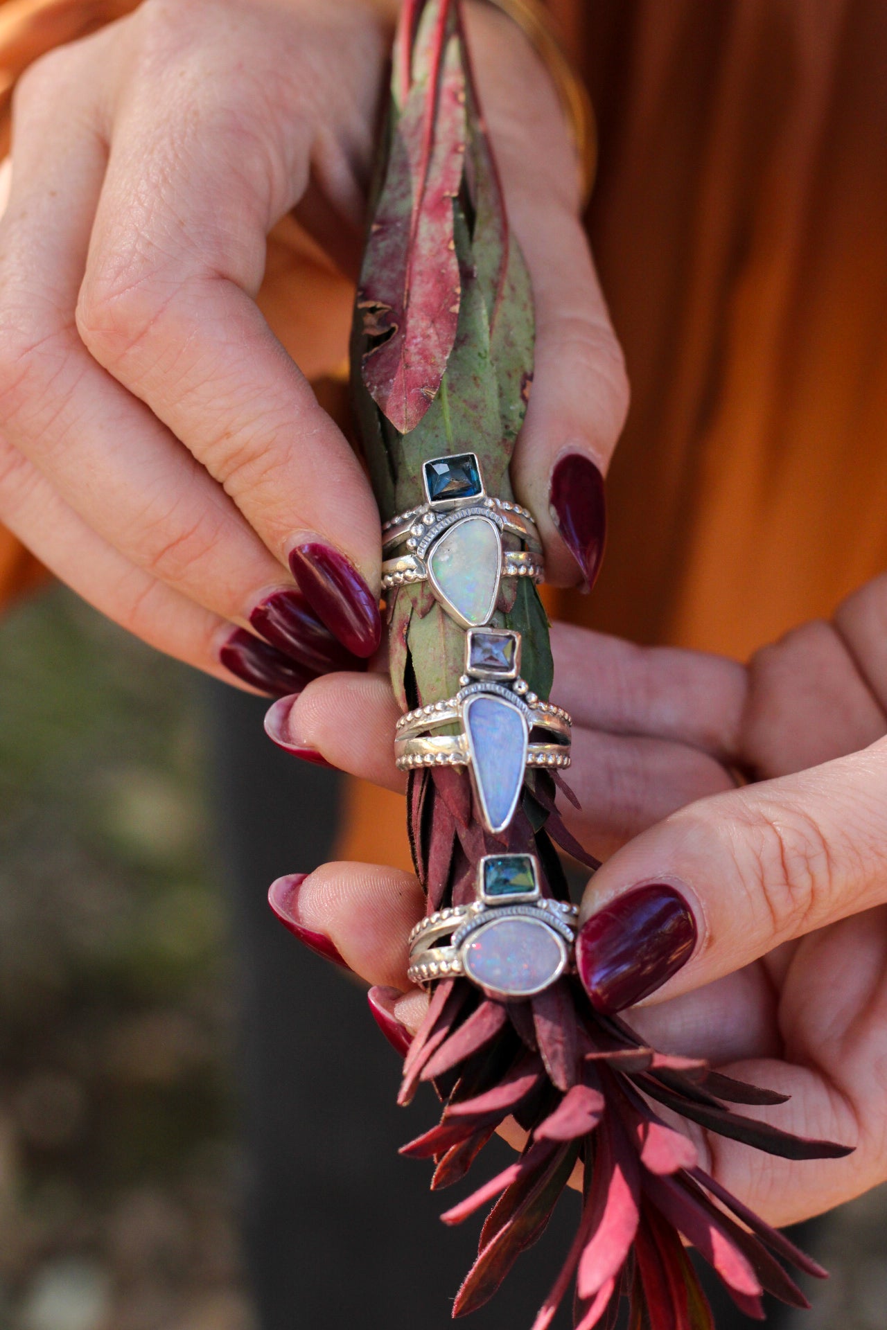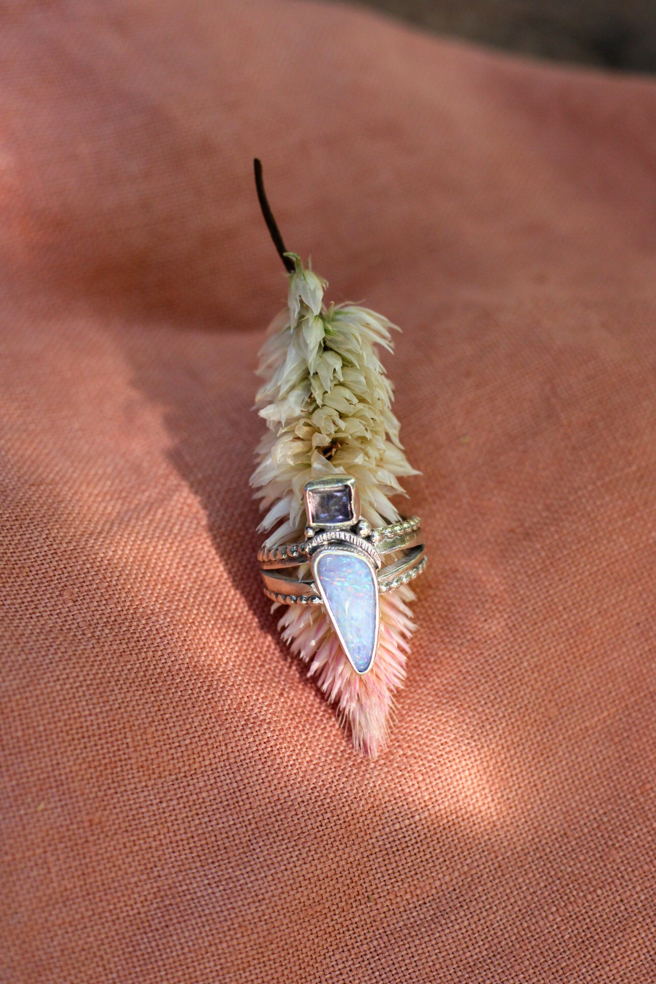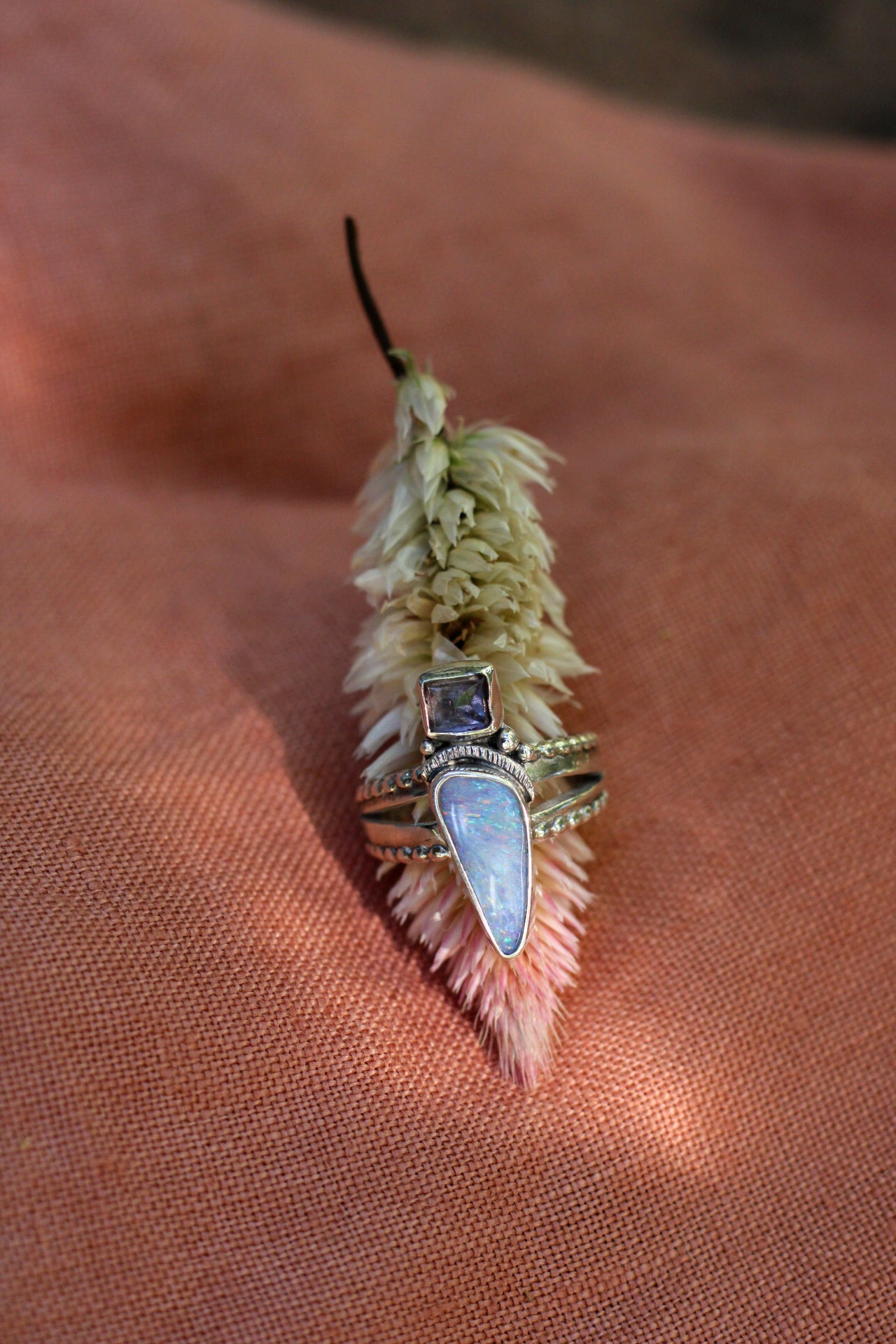 Purple Tourmaline + Australian Opal Ring - Size 6