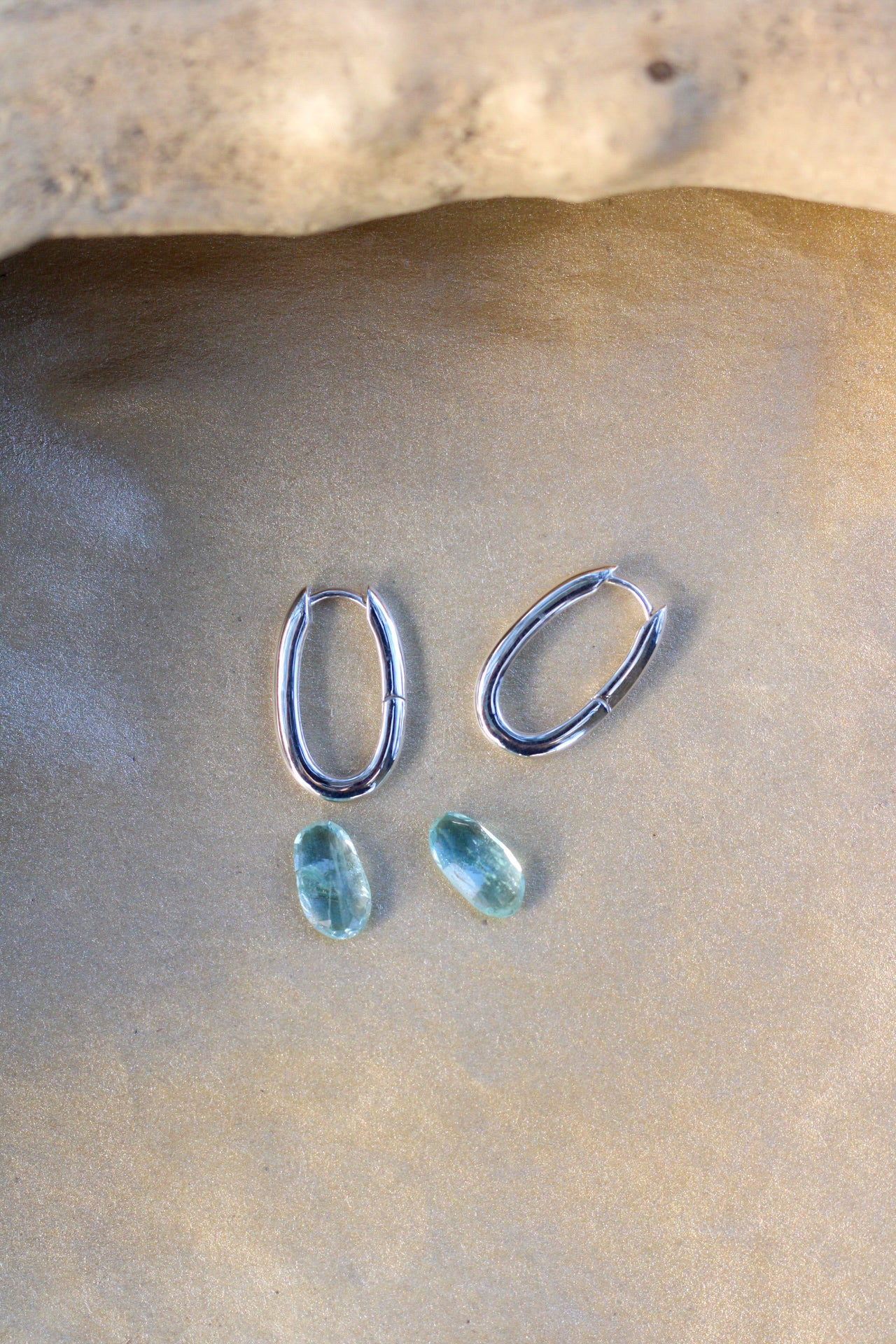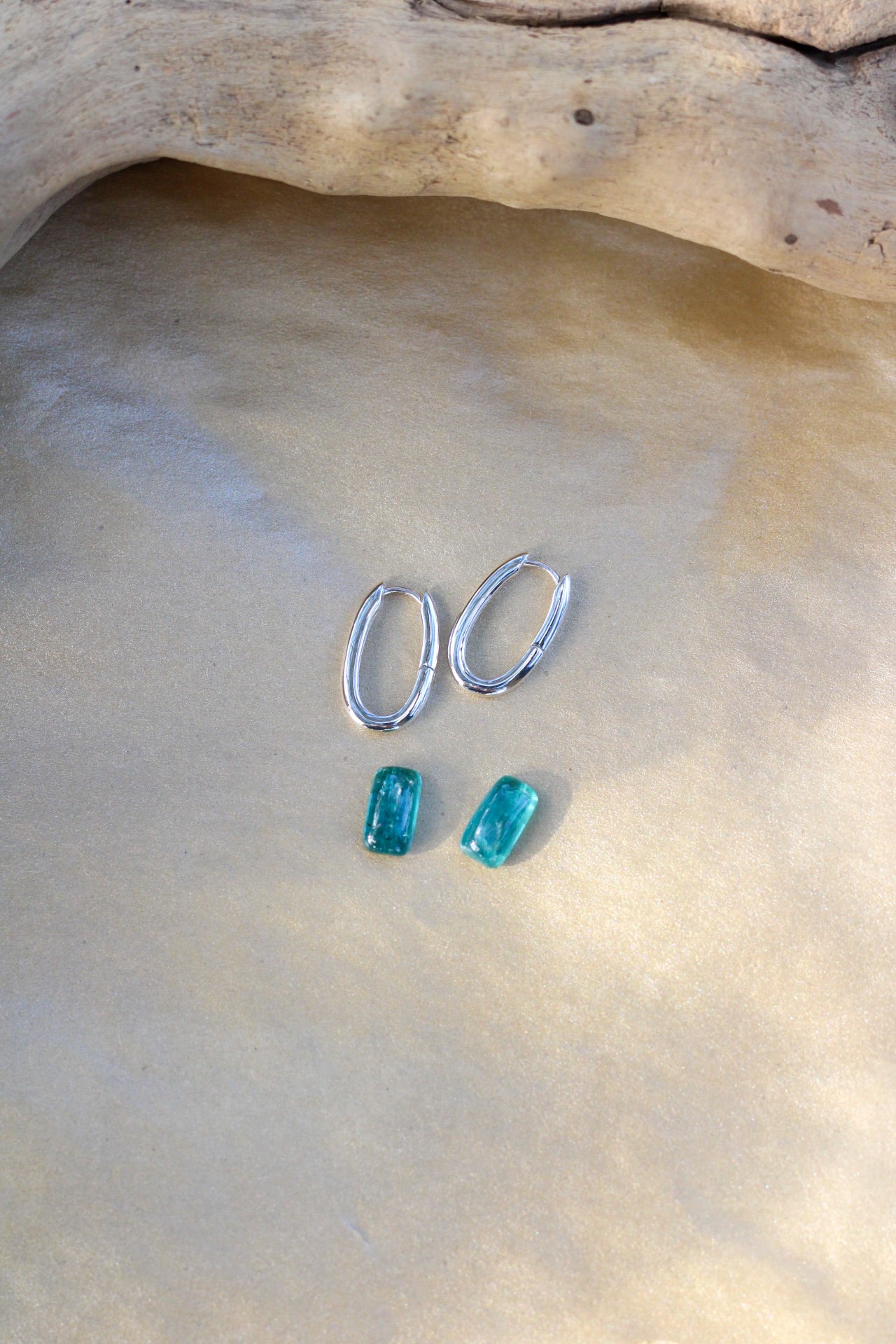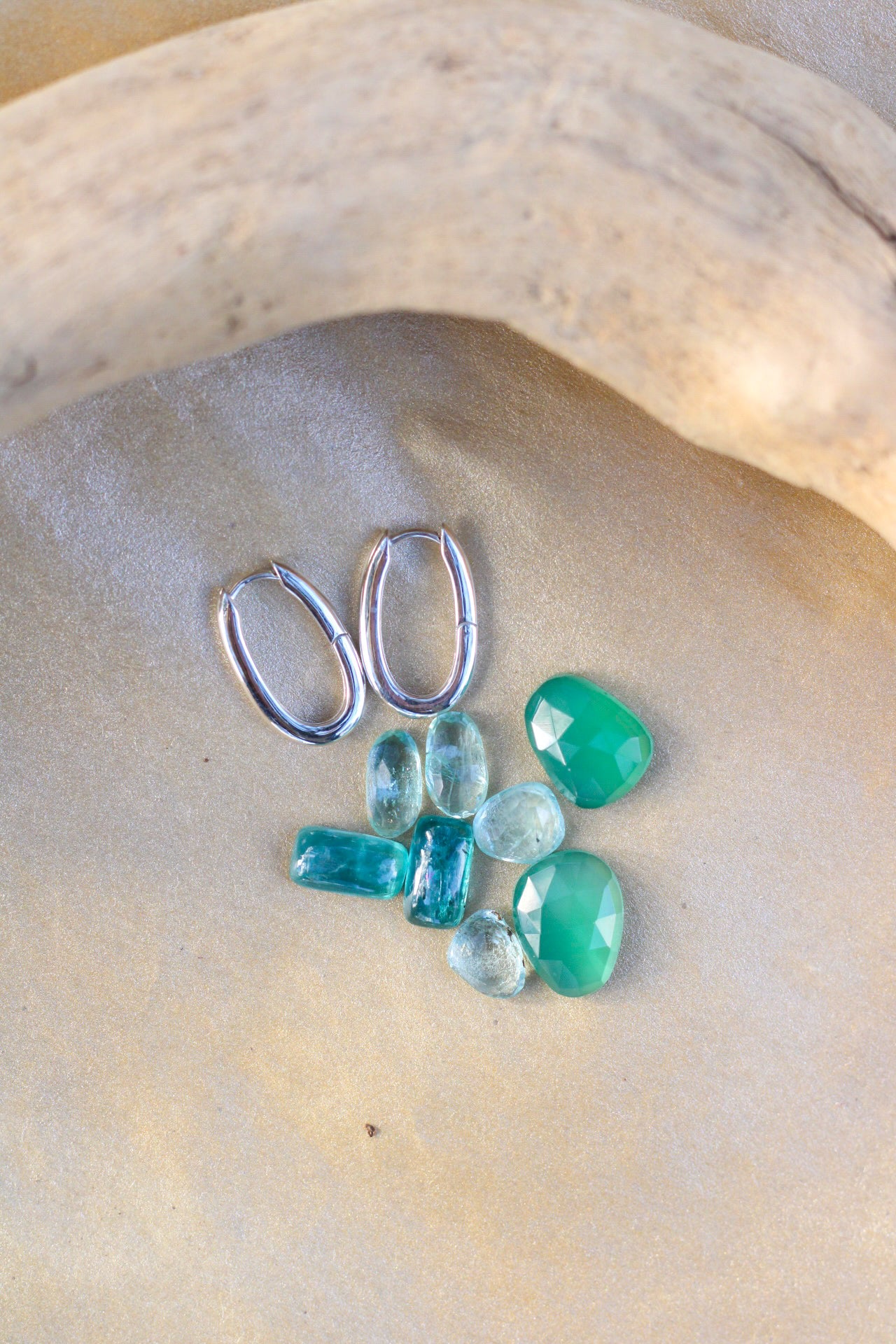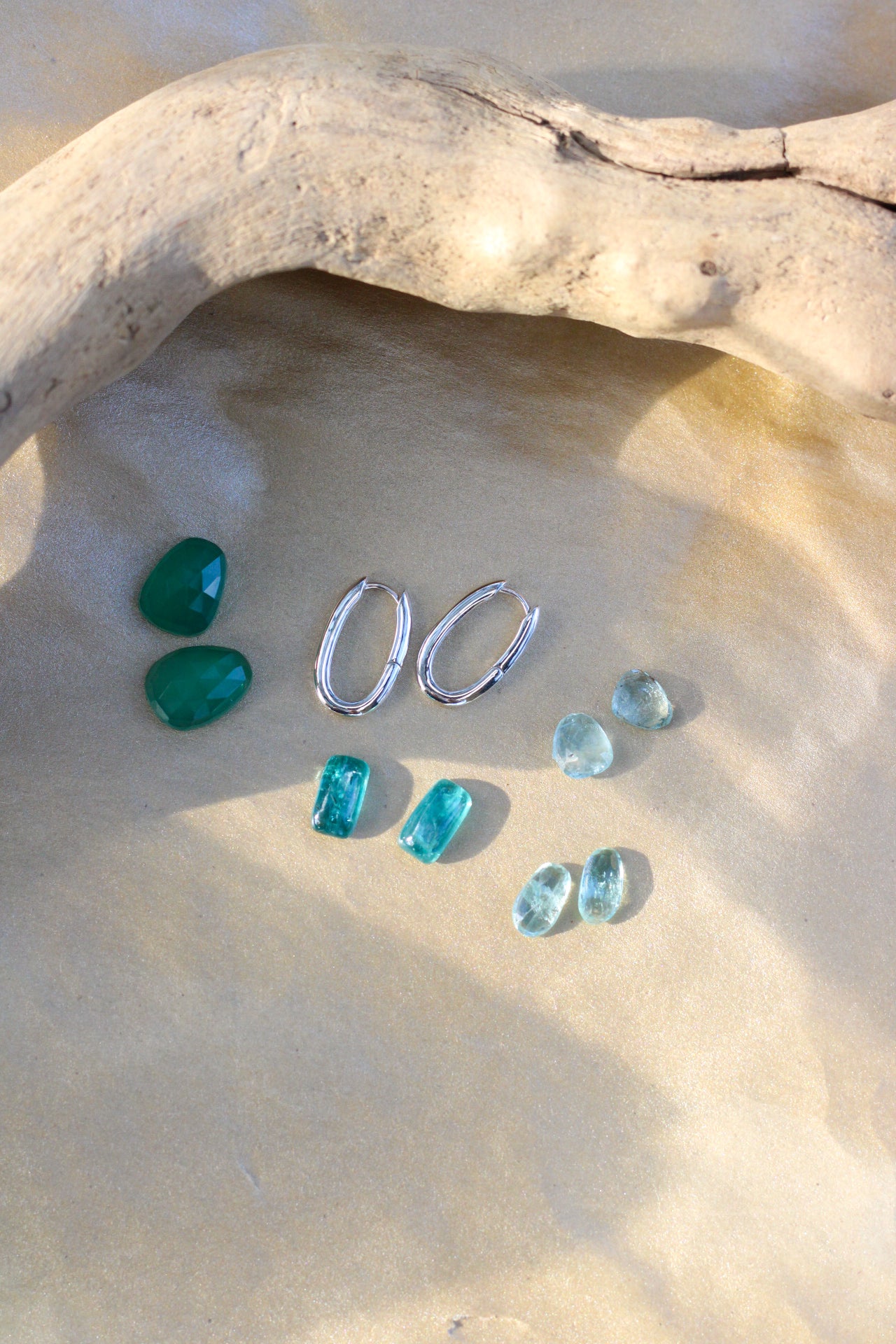 Two ways to wear, one glowing moment. These removable charm hoops let you choose your look and stone. Available in aquamarine, chalcedony or kyanite.